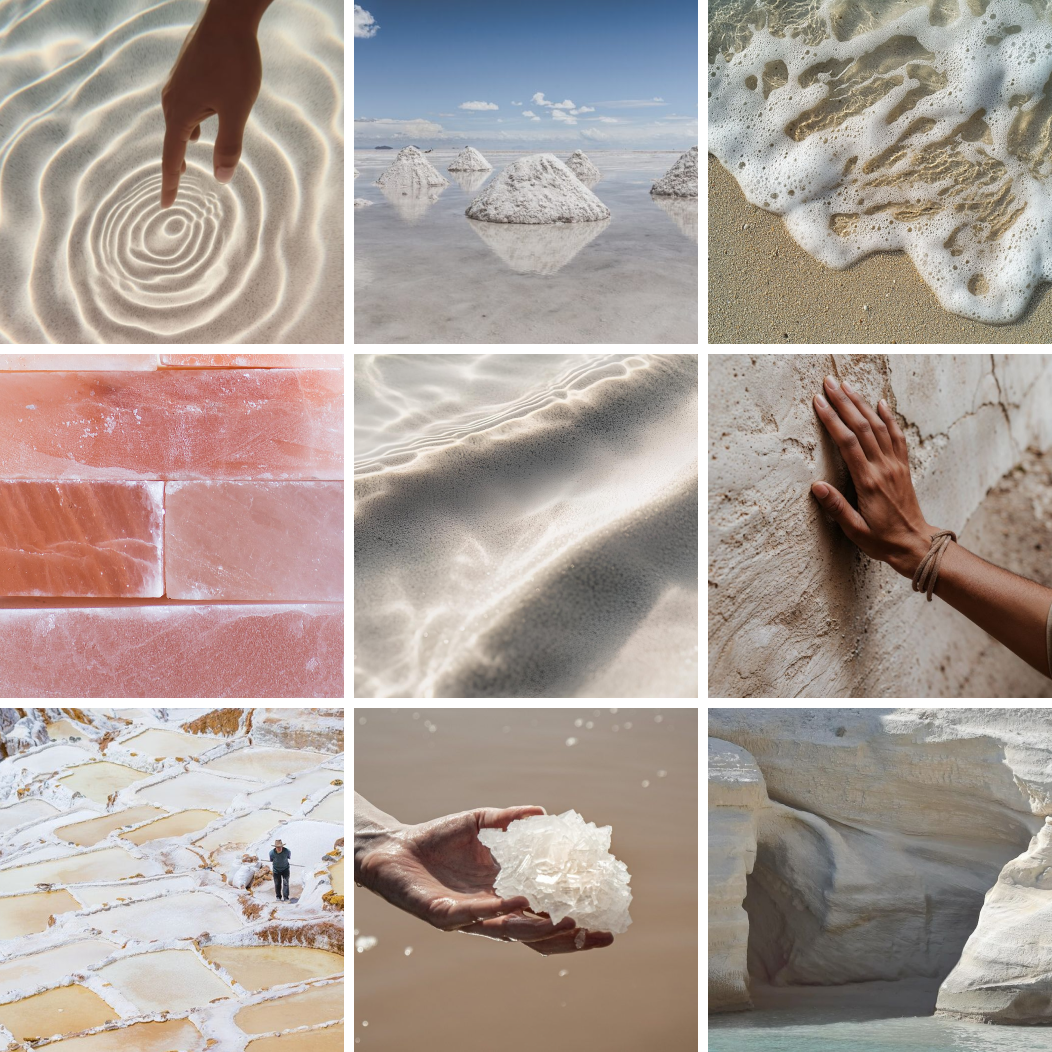 Pure by Nature explores the brand’s connection to elemental environments. The product is placed within mineral-inspired settings, salt surfaces, soft water reflections, and light-driven textures, reflecting purity and natural origin.