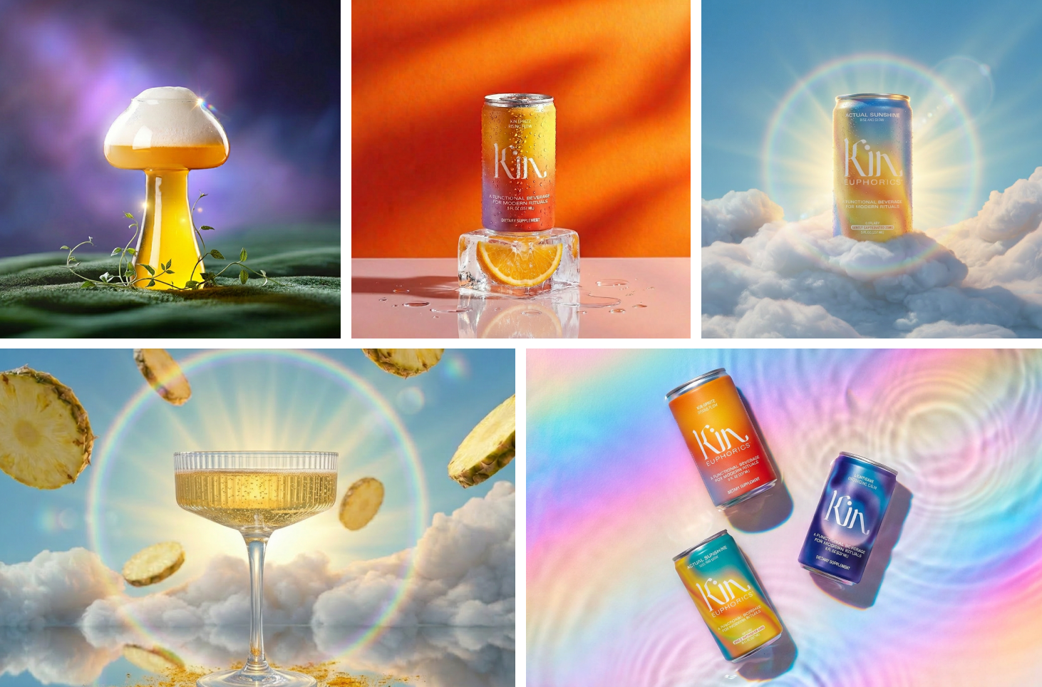 The result is a flexible visual system that allows Kin Euphorics to be expressed through multiple creative lenses, while maintaining a cohesive identity.